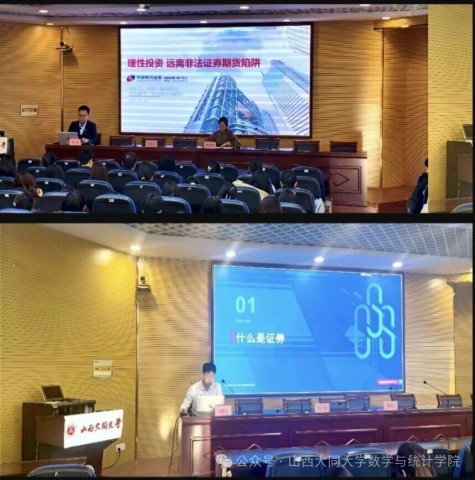 为进一步提升我院师生的金融素养,增强理性投资意识,明确证券行业认知与职业发展方向,近日,中国银河证券专家团队受邀走进数学与统计学院,为学生带来了两场内容丰富、干货满满的专题报告。学院部分学生代表参加了此次活动,现场学习氛围浓厚。