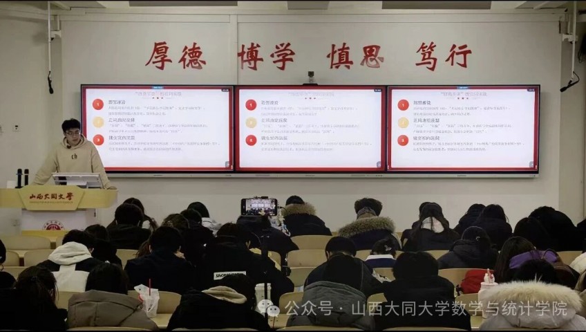 为引导青年群体准确把握“自我革命”这一时代命题的深刻意义,强化其在新征程中的责任意识与行动自觉,2025年12月8日18:45,数学与统计学院在行知楼118室开展了“跳出历史周期率的‘第二个答案’与当代青年的斗争精神”主题团课活动。25级经统一班25级数学七班共98人参与。