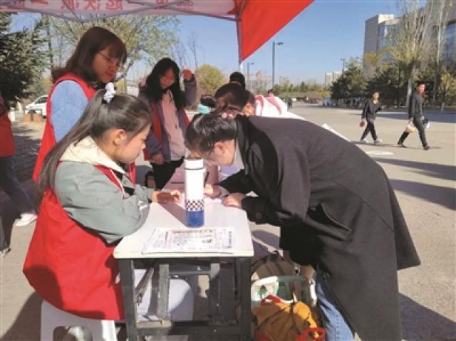 11月1日,大同大学数学与统计学院青年志愿者举办了爱心衣物捐助活动。当日,青年志愿者们以对比鲜明的数字和大学生易于接受的方式,提出闲置衣物的可再利用性,了解情况后的大学生们纷纷将自己闲置的衣服、书包、鞋等捐赠出来。多名完成捐赠的女生表示,将自己“压箱底”的衣物,捐赠给有需要的人,帮助他人度过一个温暖的寒冬,觉得这样的活动环保又温暖。