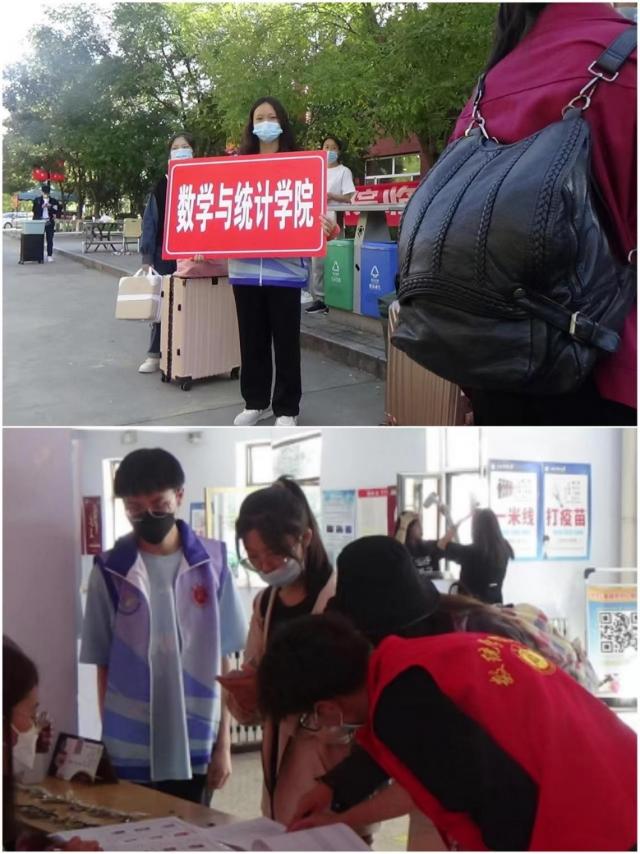 暑威尽退,金风送爽,新一程的旅途从此刻开始。9月13日,数学与统计学院迎来了267名数学系的新生与99名统计系的新生。为切实做好迎接2022级新生的准备工作,确保迎新各项工作有序开展,学院成立了由学院班子成员、科级干部、专兼职辅导员以及院团委的学生志愿者组成的迎新工作组。结合今年的疫情防控要求,为了使迎新接待工作高效有序,志愿者们拍摄了数统学院报到引导视频提前发布给新生,并制作了采集学生报道信息的二维码,提前加设报到点帐篷及学院迎新横幅,极大的简化了报道流程。